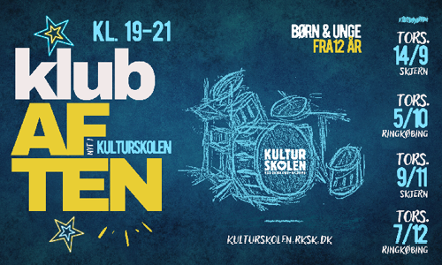 Kulturskolens klubaftener er lige så stille kommet i gang, sidste klubaften i år er torsdag den 7. december i Ringkøbing. Vi håber at kunne fortsætte i det nye år.